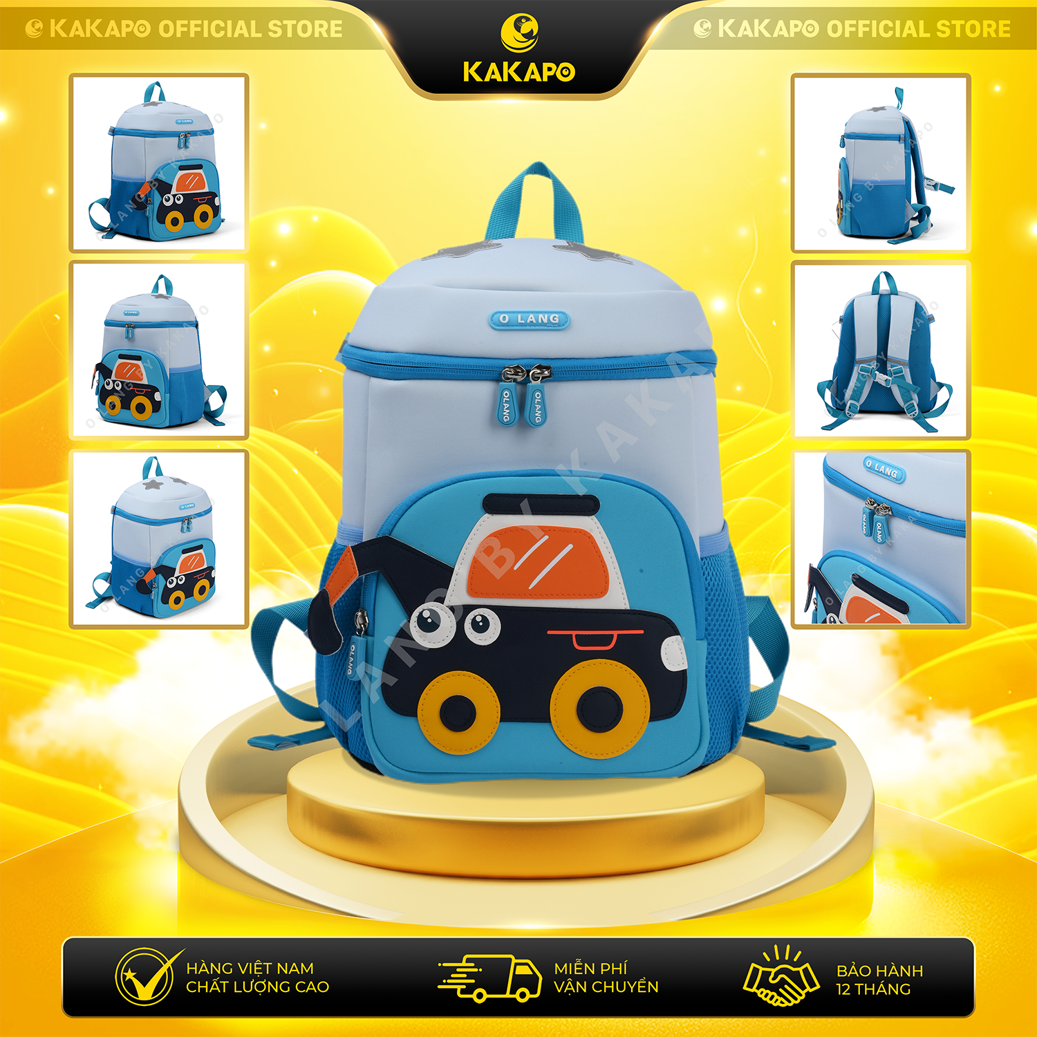 Balo trẻ em hình máy xúc siêu dễ thương, thiết kế nổi bật, phù hợp cho bé trai đi học mẫu giáo, đi chơi hoặc dã ngoại. Sản phẩm có kiểu dáng gọn nhẹ, chất liệu êm mềm giúp bé đeo thoải mái suốt ngày.