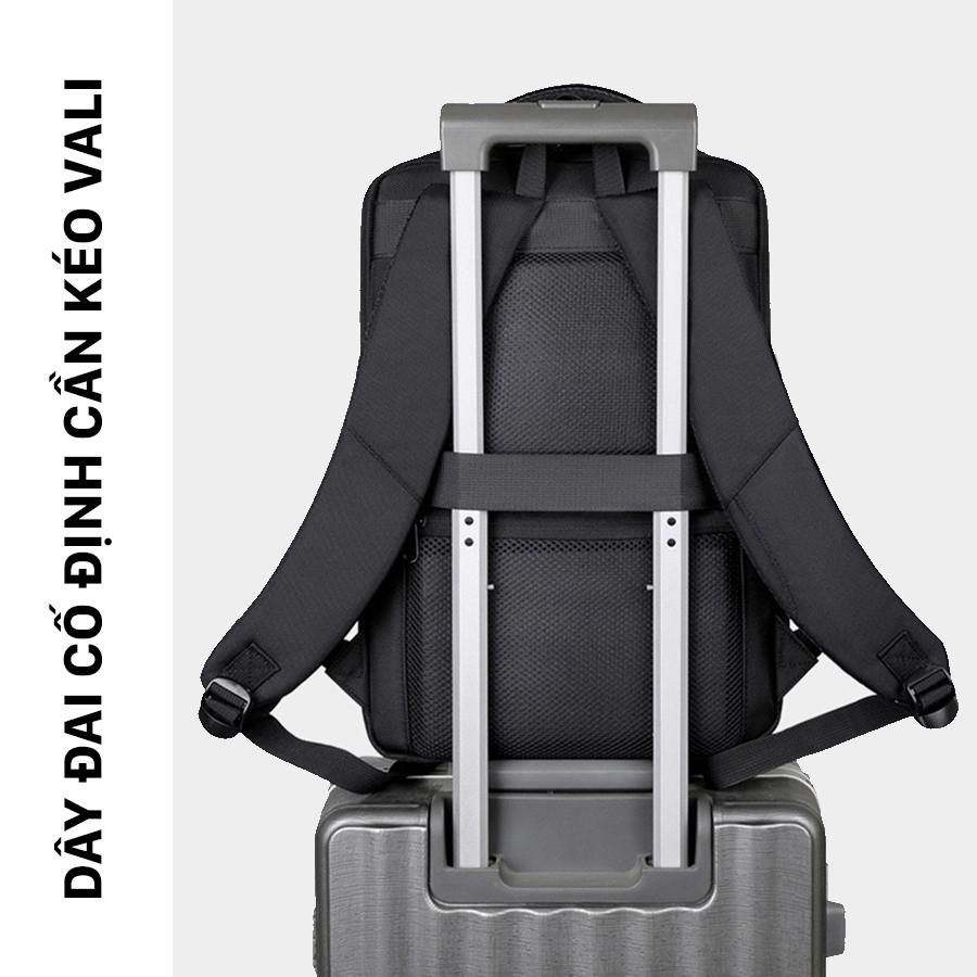 - DÂY CỐ ĐỊNH VALI: Có dây đai gắn vào tay kéo vali, cực kỳ tiện khi đi sân bay, công tác. Giúp cố định balo chắc chắn, không xê dịch.