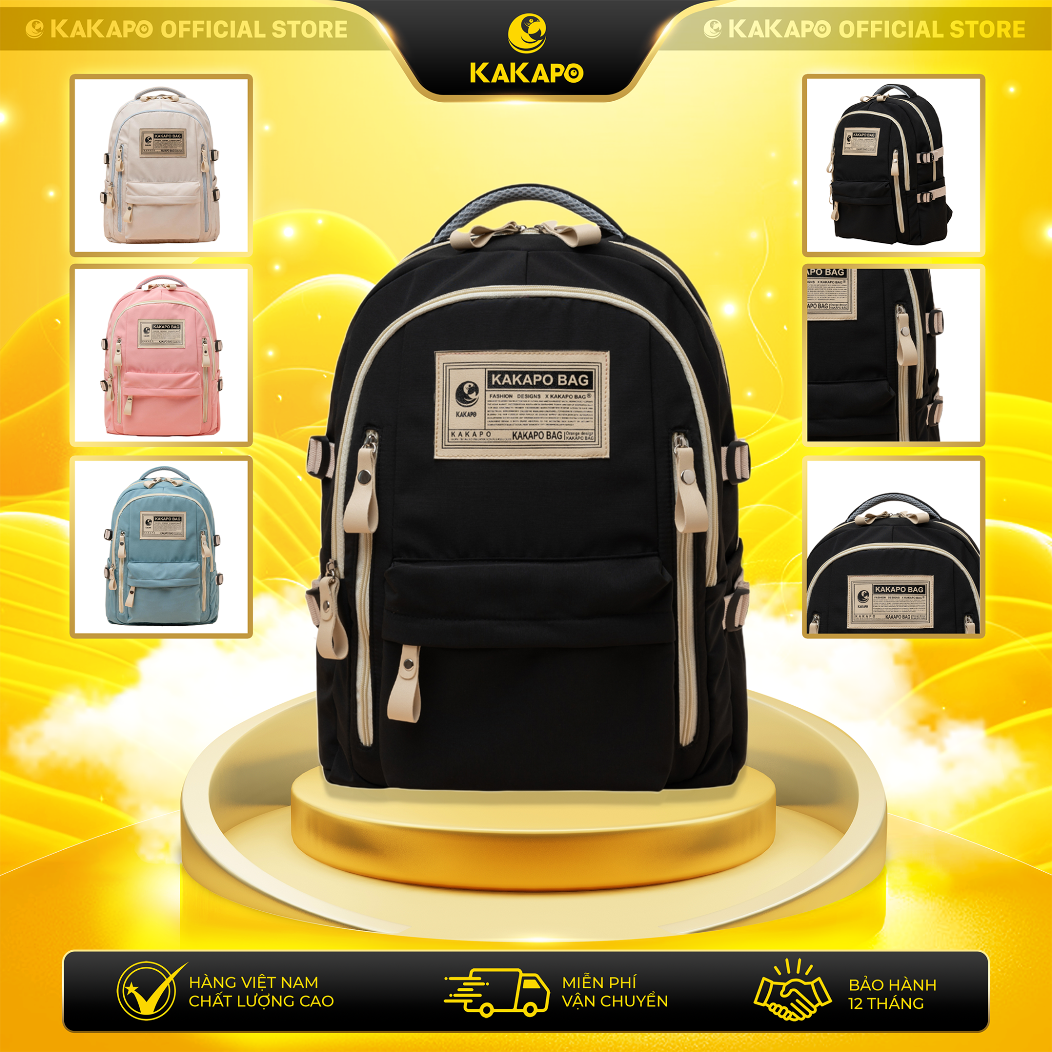 - Mặt trước balo gồm 4 ngăn: 1 ngăn lớn và 3 ngăn nhỏ tiện lợi, mặt sau có 1 ngăn chứa đủ để đựng ví, atm vô cùng tinh tế